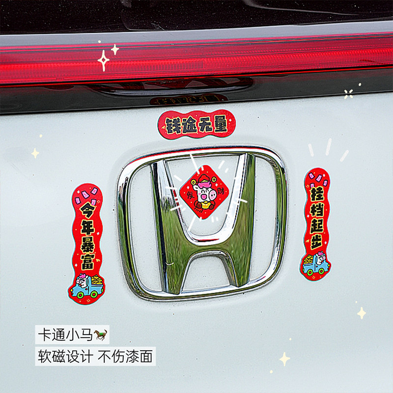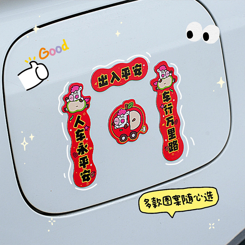 新年迷你对联汽车贴纸磁吸贴磁力车贴出入平安磁性装饰不伤车漆