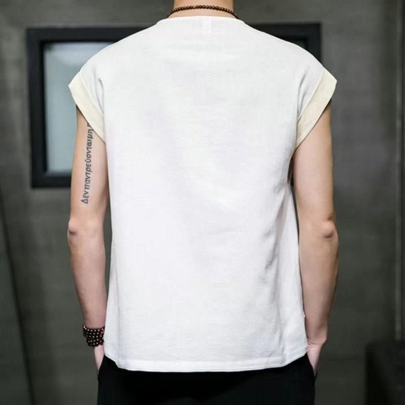 25A11B1夏季复古中国风盘扣棉麻背心男唐装汉服汗衫休闲无袖坎肩