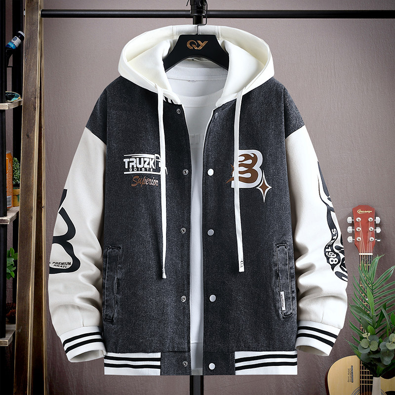 春季潮流宽松牛仔外套12岁男孩13青少年中学生14大童15棒球服夹克
