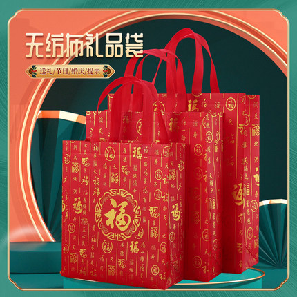 福字礼品袋子无纺布手提袋新年送礼袋装烟茶酒高档红色中式礼品袋