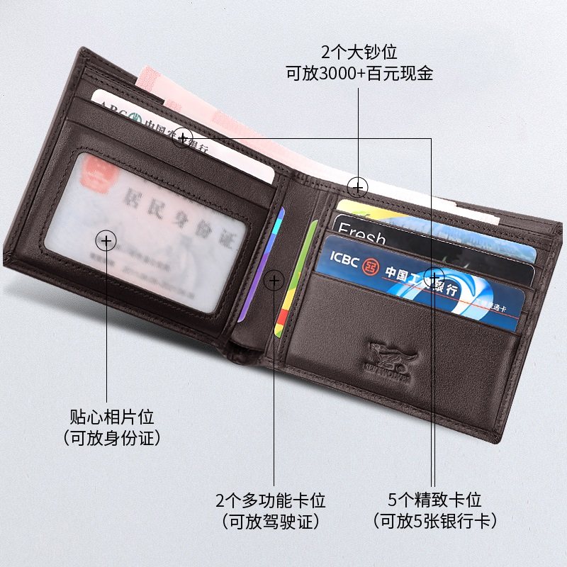 七匹狼新款真皮男士钱包头层牛皮