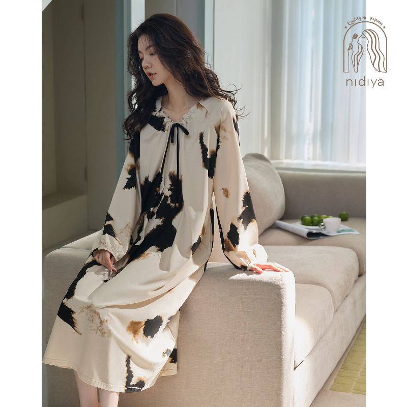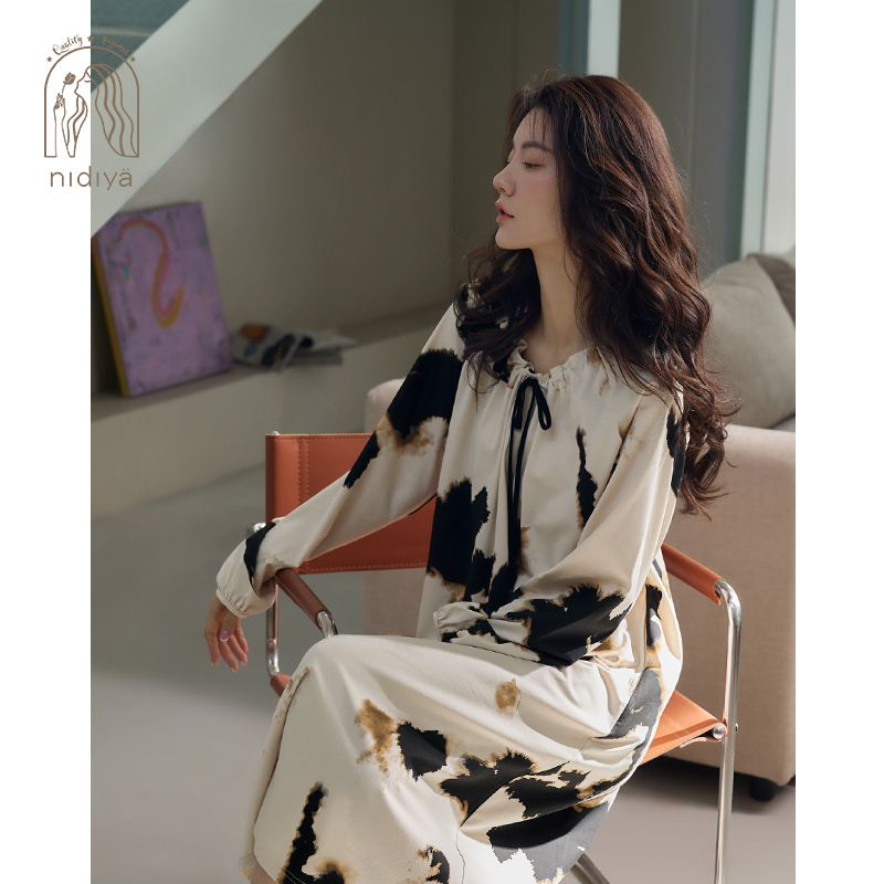 妮狄娅睡衣睡裙女秋季长袖柔软棉艺术感长裙宽松可外穿春秋家居服