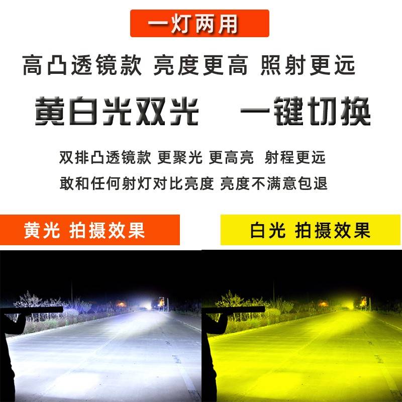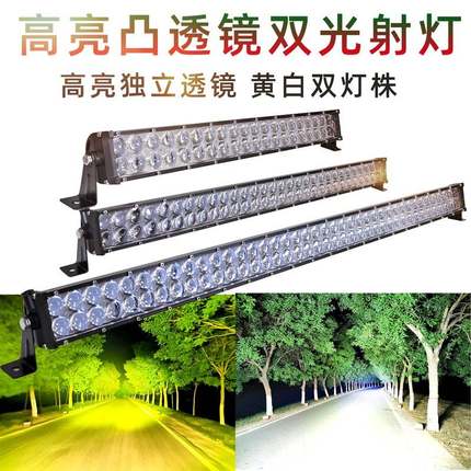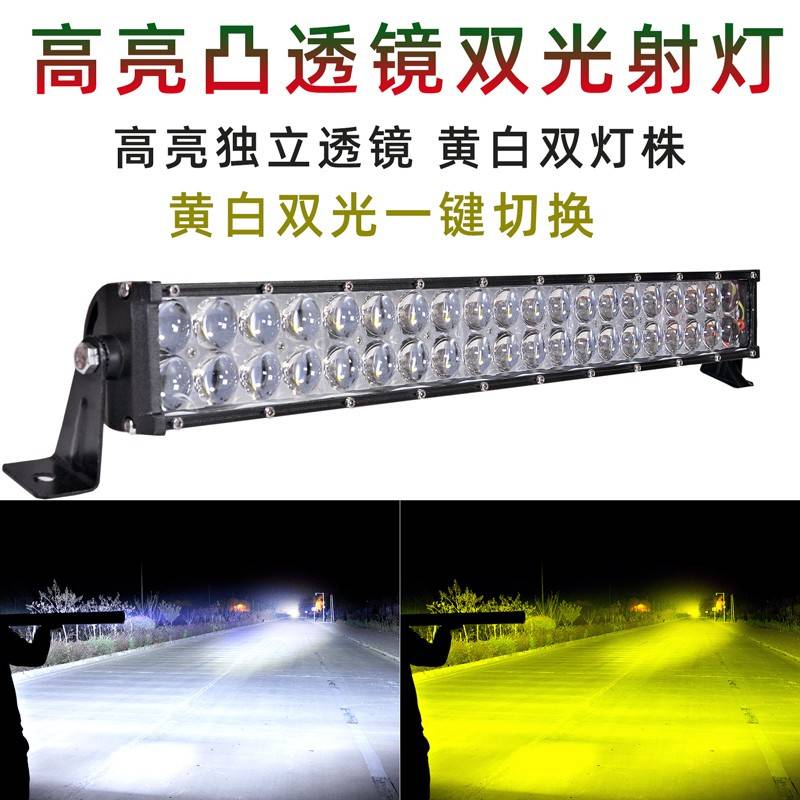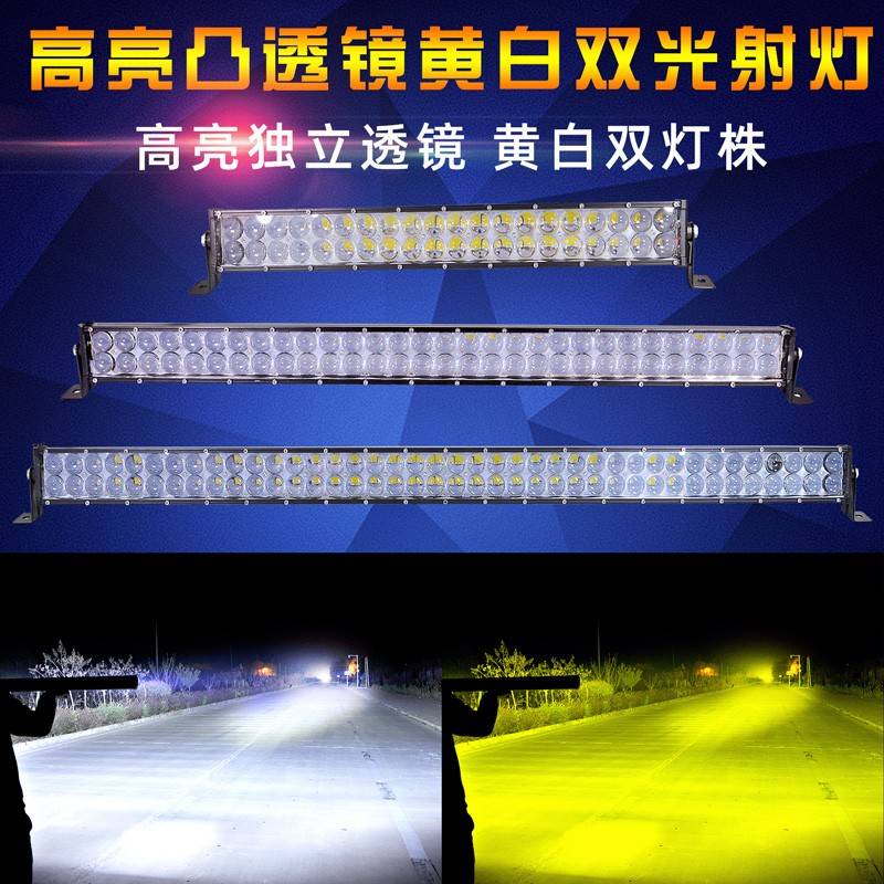 汽车led长条射灯凸透镜 黄白双色远光灯 12V24伏改装中网爆闪杠灯