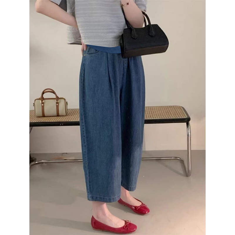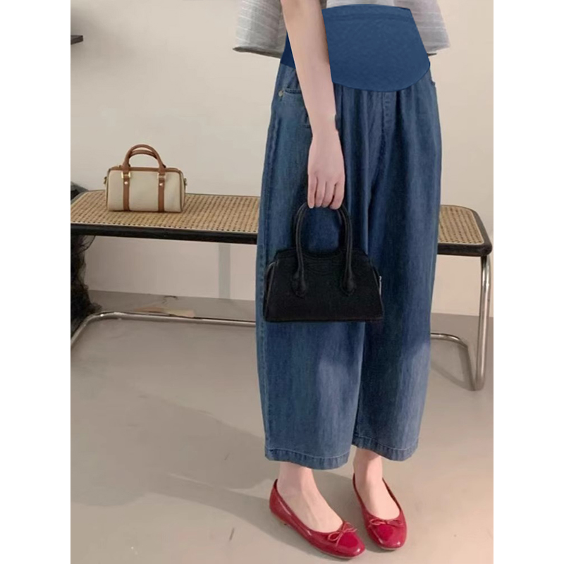 孕妇裤夏季薄款香蕉裤女大码显瘦宽松九分牛仔阔腿哈伦裤外穿8366