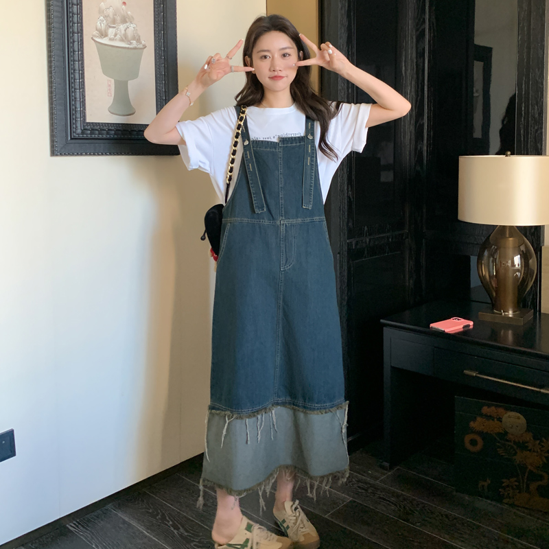 1095 新款2023春装流苏复古色牛仔背带裙宽松 p105k158