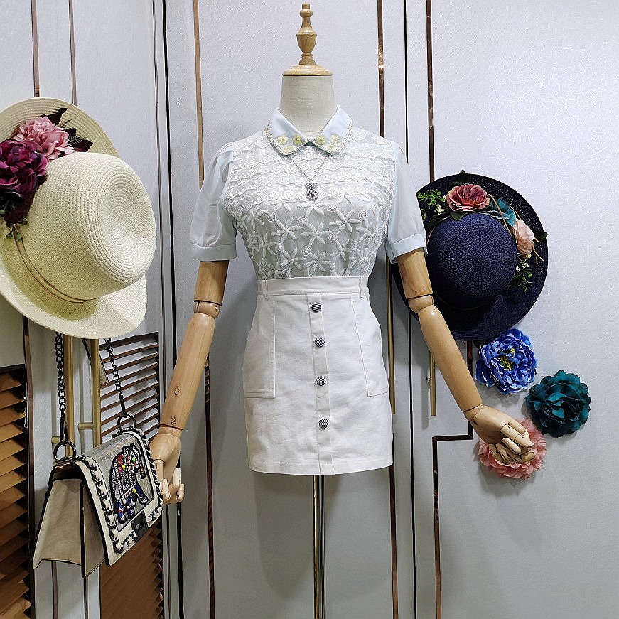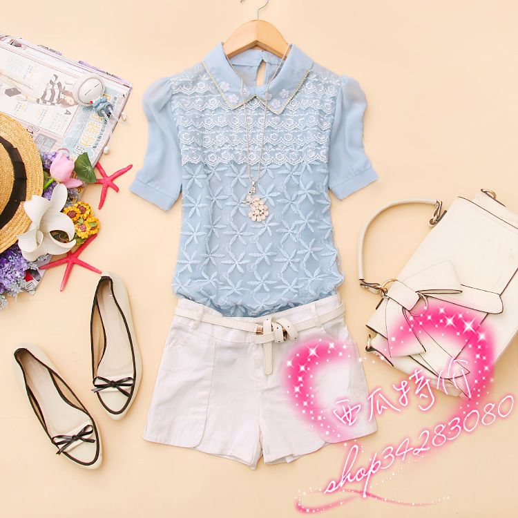 娃娃领雪纺衬衫女2025夏季新款时尚洋气别致上衣高级感短袖蕾丝衫