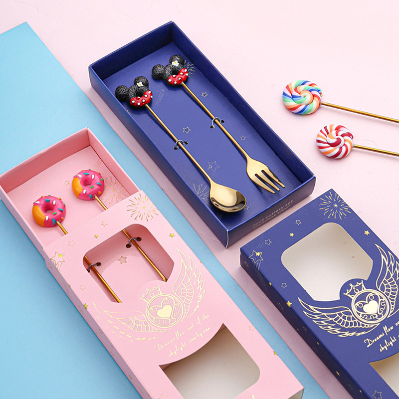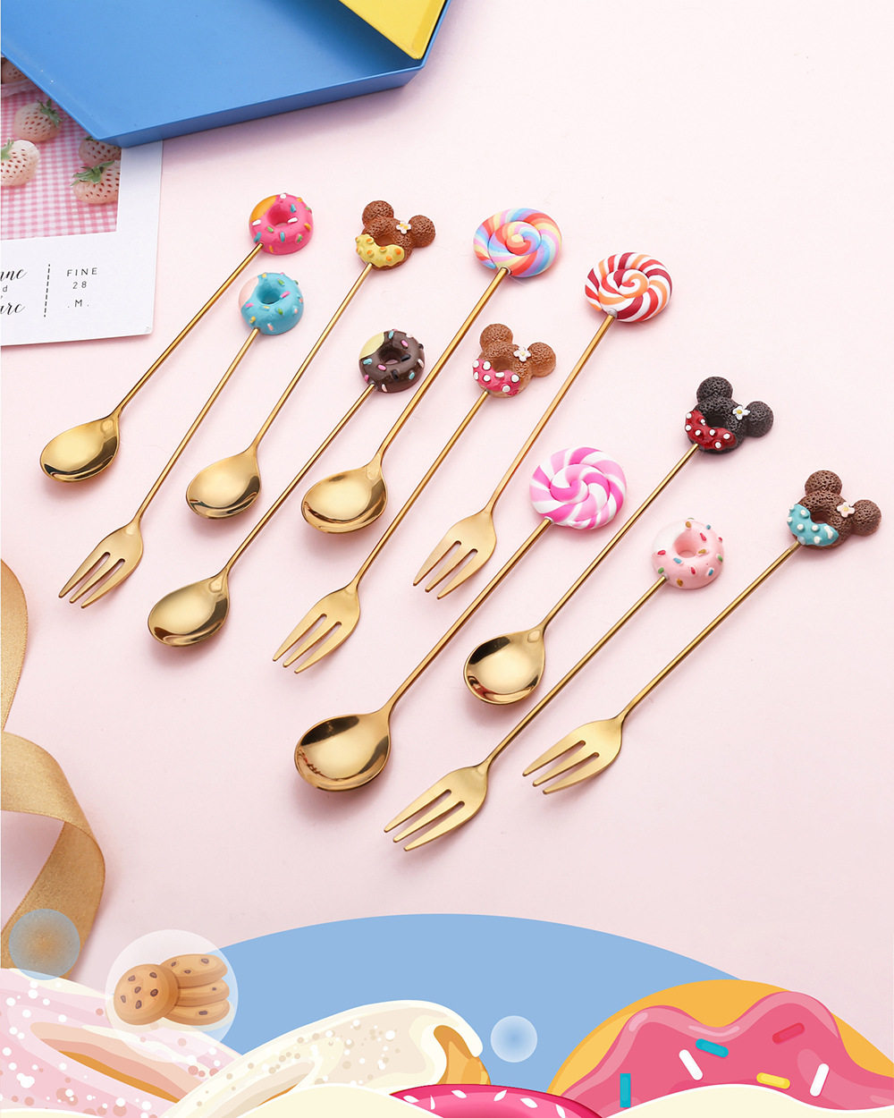 创意卡通勺子甜甜圈勺叉|个性咖啡勺叉|金色勺子蛋糕叉甜品勺回礼