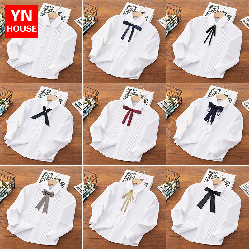 儿童白衬衫男女童春秋长袖混纺打底白色中大童2024新款男女童衬衣