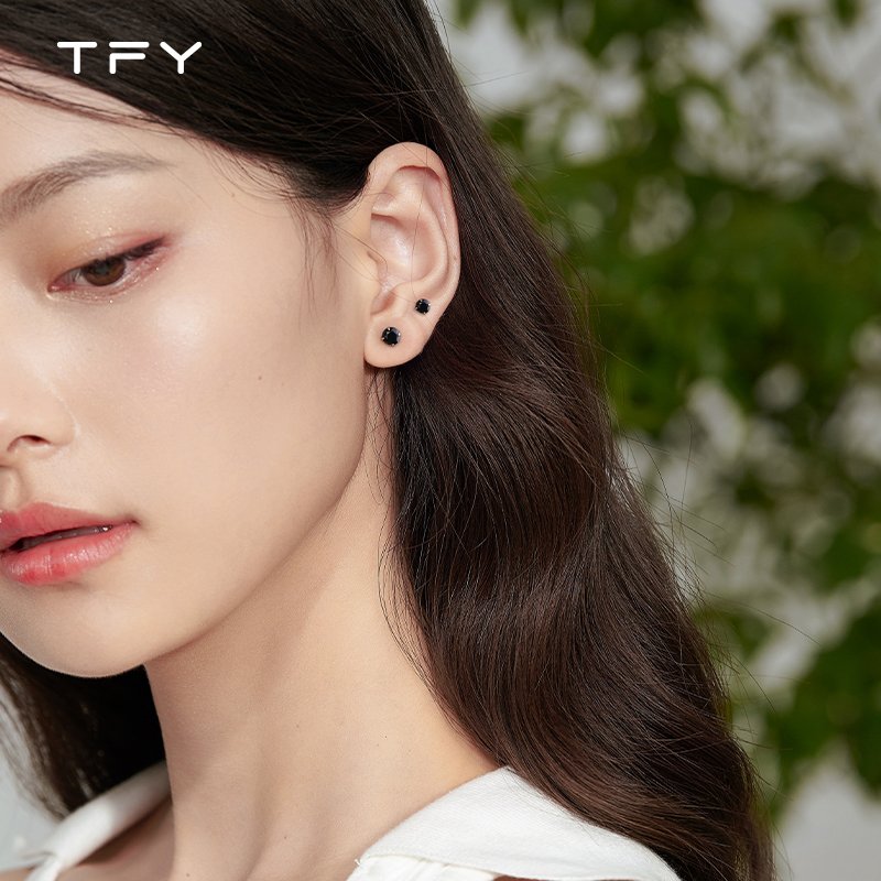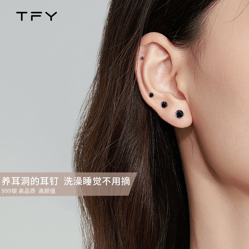 tfy黑色纯银耳钉养耳洞