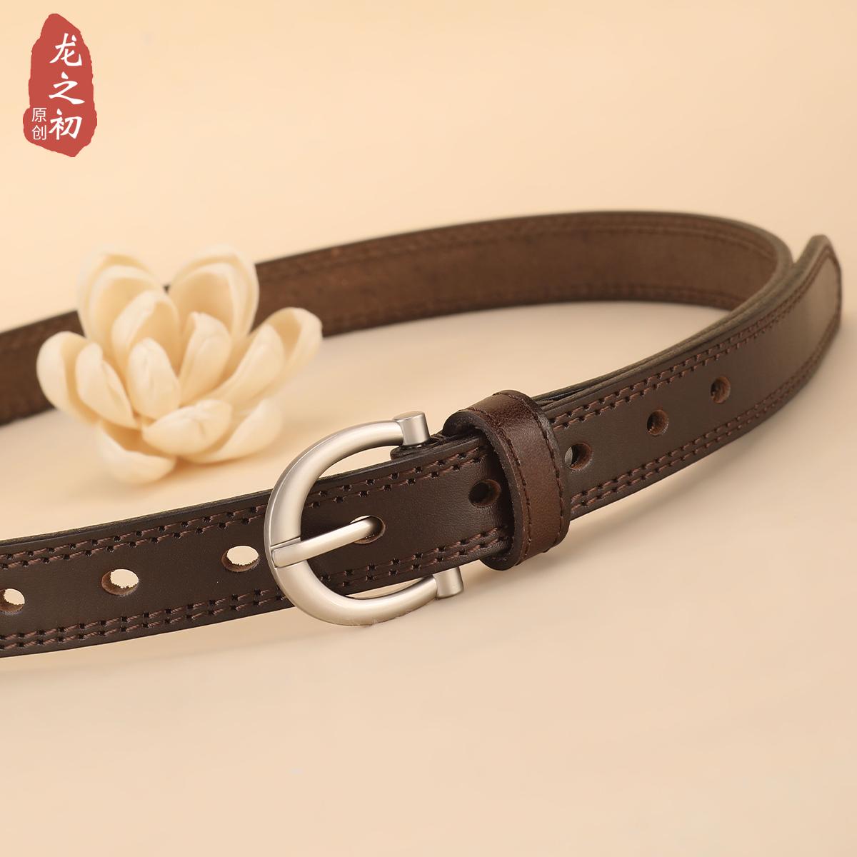 头层牛皮皮带女士细宽腰带配配西裤牛仔裤裙文艺简约裤带休闲百搭