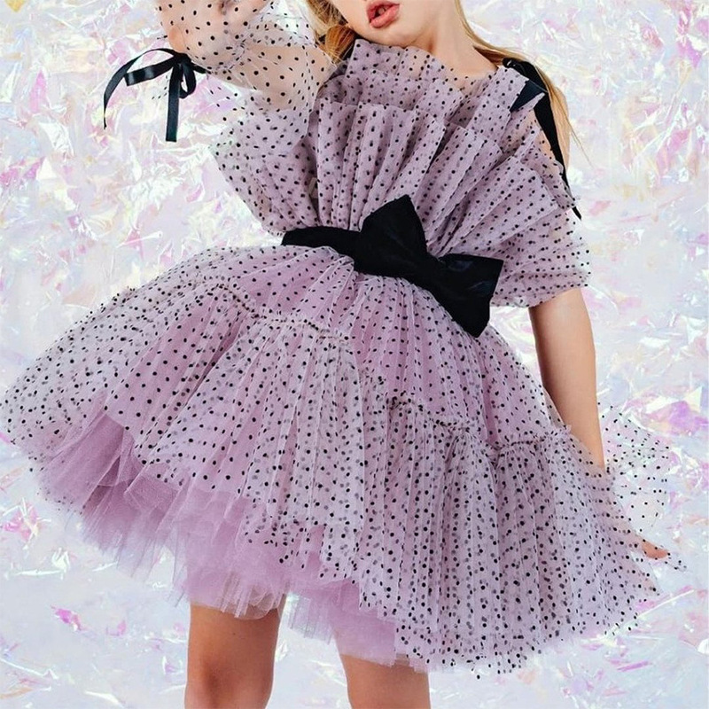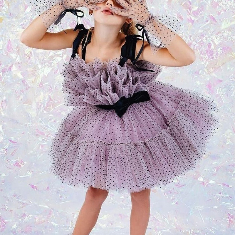 紫色吊带儿童礼服裙2025秋新款宝宝生日蓬蓬公主裙女童走秀演出服