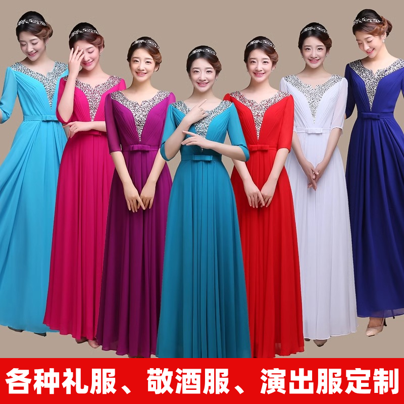 来图定制婚纱礼服敬酒服私人订制主持人服装团体服演出独唱表演服