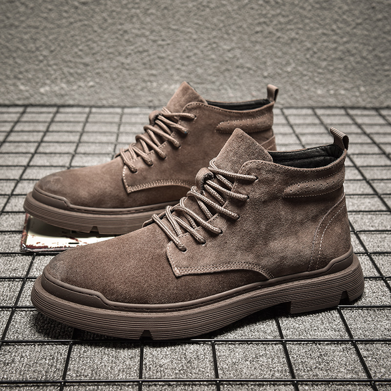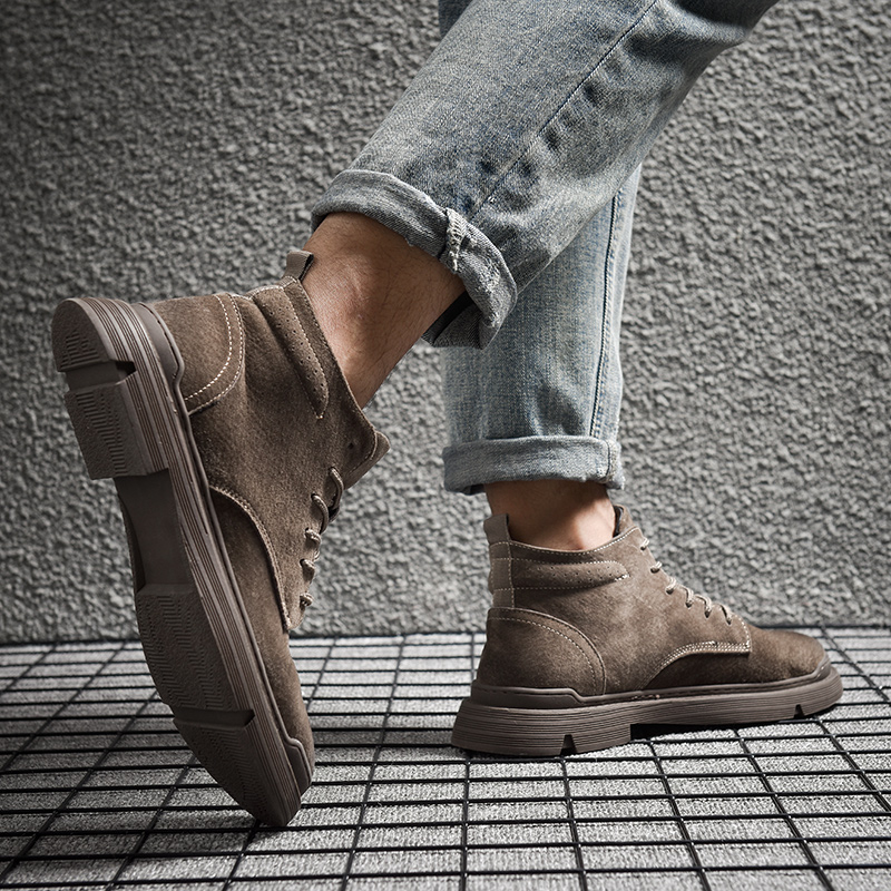 马丁靴男款翻毛短靴潮男靴子秋季磨砂英伦中帮男鞋透气真皮工装靴