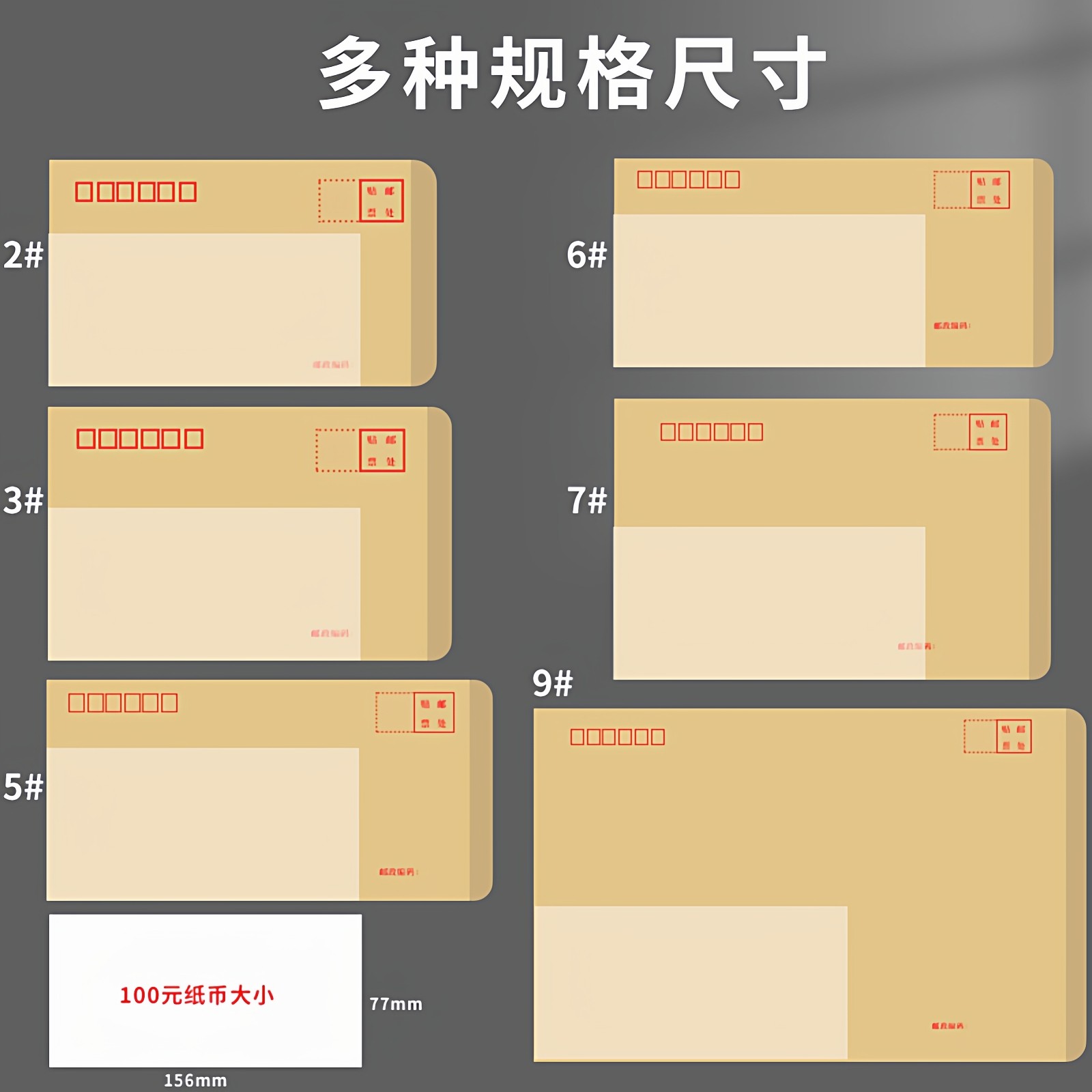 200个牛皮纸信封袋邮局邮封信纸文件袋大小号增值税发票专用发票袋工资袋办公用品批发可定制印刷logo