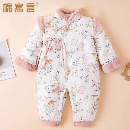 秋冬季宝宝连体衣纯棉夹棉洋气新中式哈衣百天婴儿爬服厚保暖棉衣