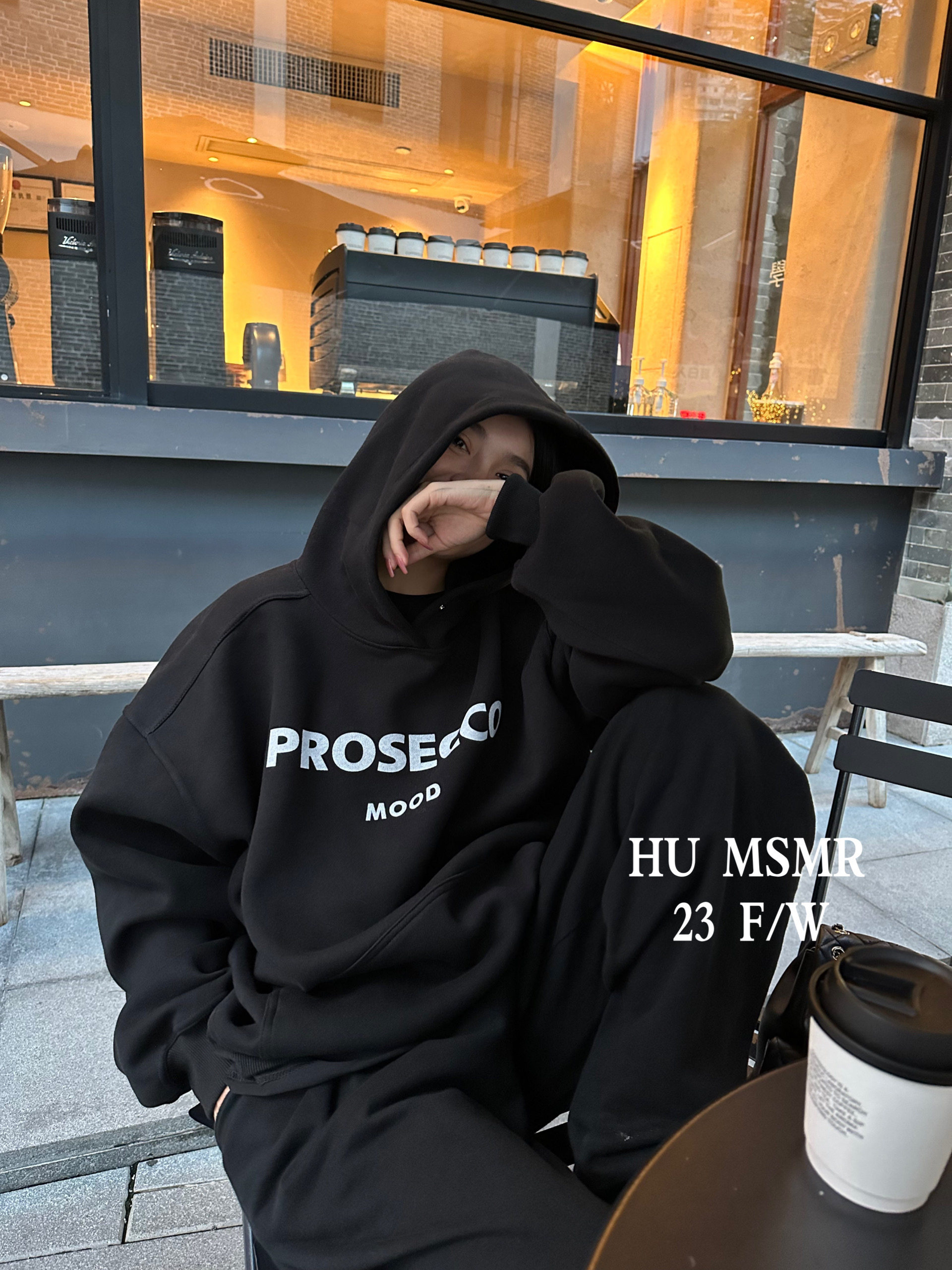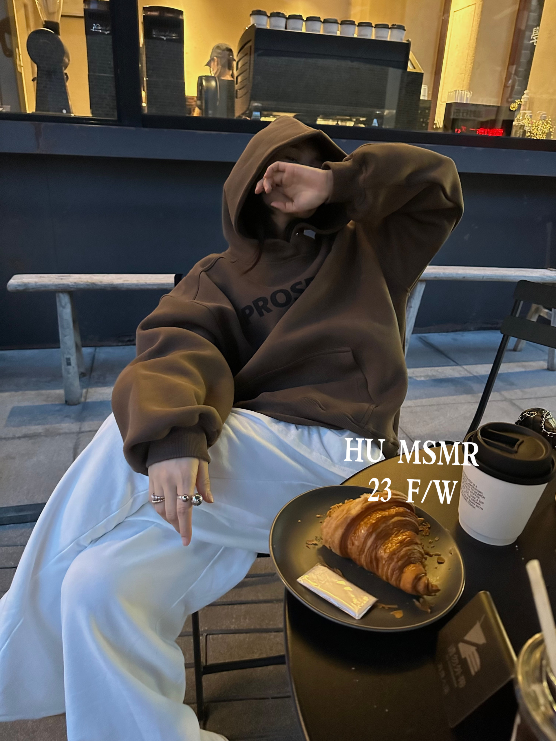 HU MSMR秋冬大板宽松连帽卫衣减龄洋气字母慵懒风oversize女上衣
