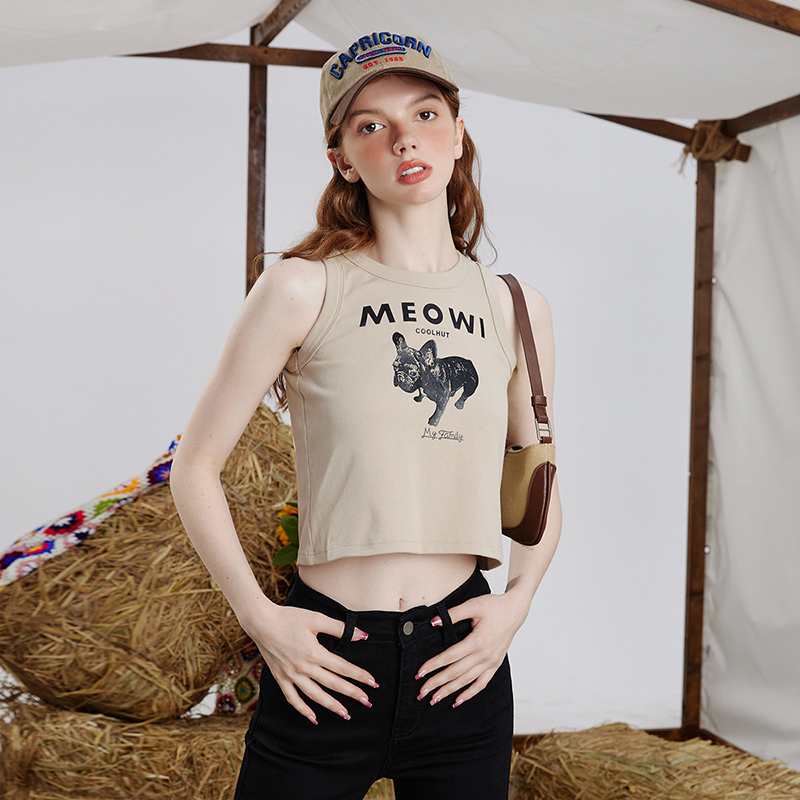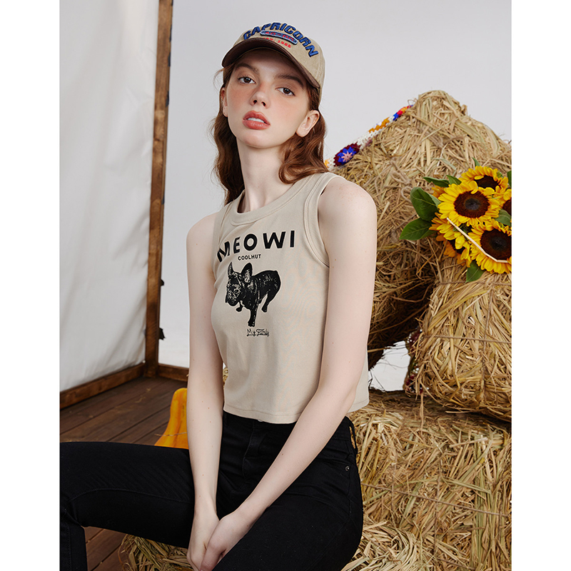 a022025春季新款辣妹风短款无袖上衣个性印花休闲百搭女式背心