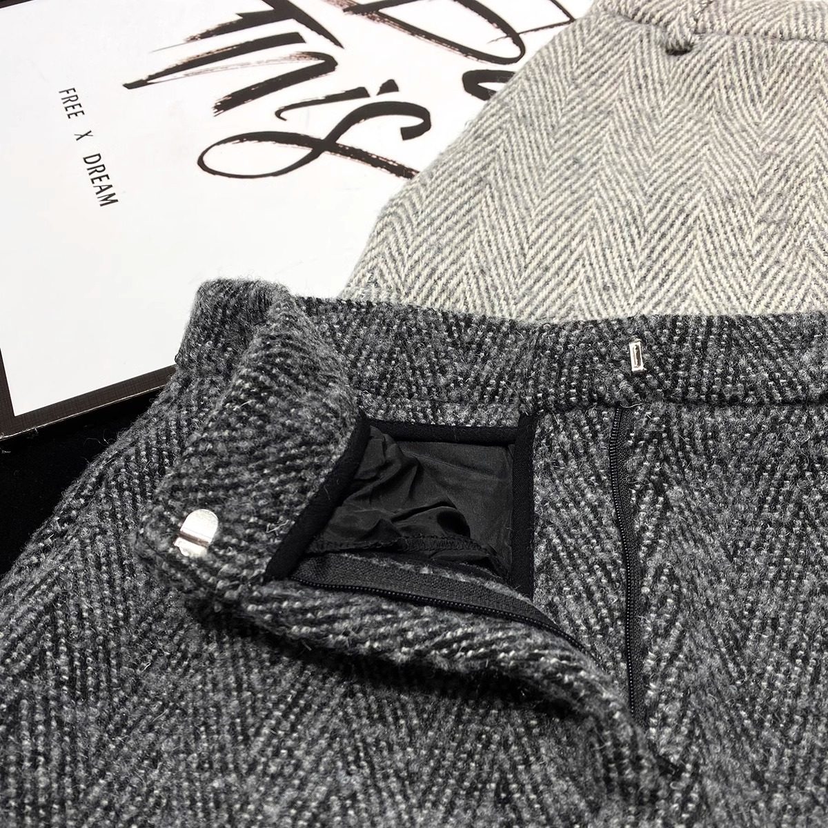CCA自制高街美式复古毛呢半身裙A字裙高腰加厚外搭灰色呢子短裙女