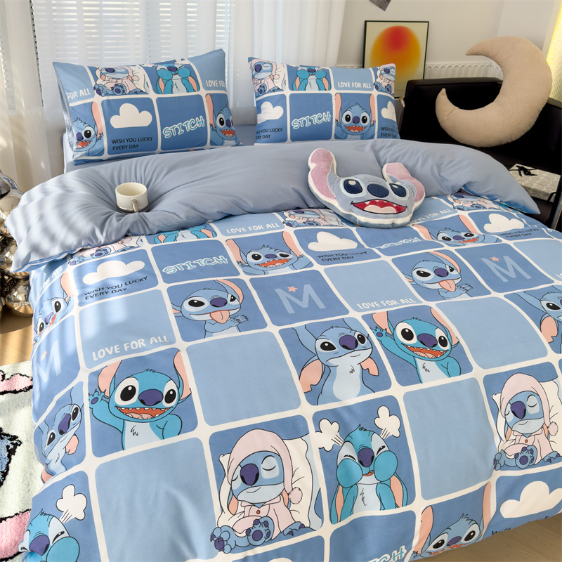 迪士尼床上四件套全棉史迪仔儿童宿舍纯棉三件套男孩被套床单床笠