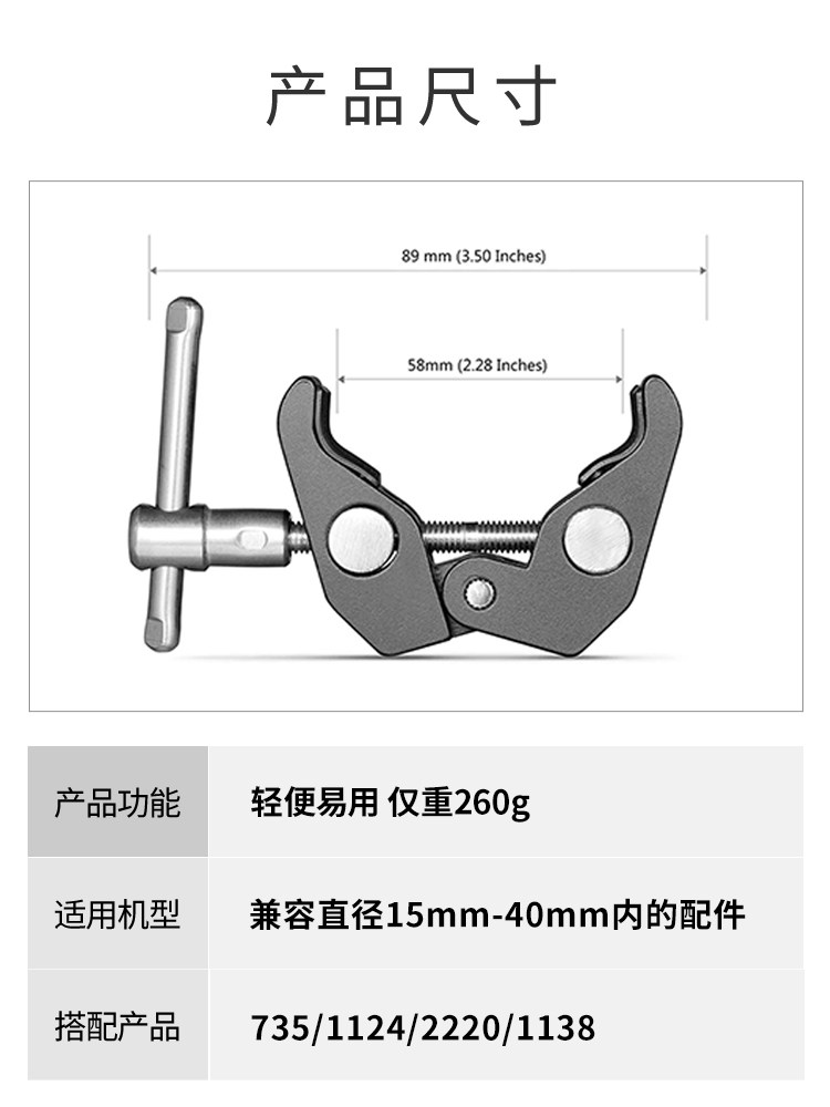 SmallRig斯莫格 蟹钳夹相机配件 管夹微单配件单电夹蟹钳2058