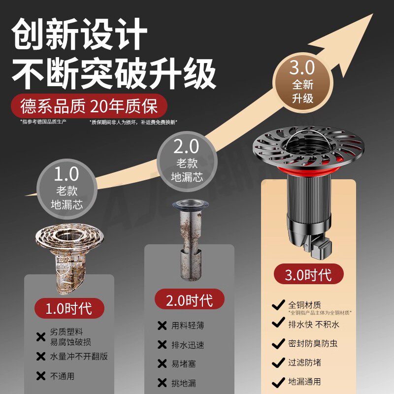 全铜地漏防臭器内芯浴室卫生间下水管防返臭神器封口盖通用排水