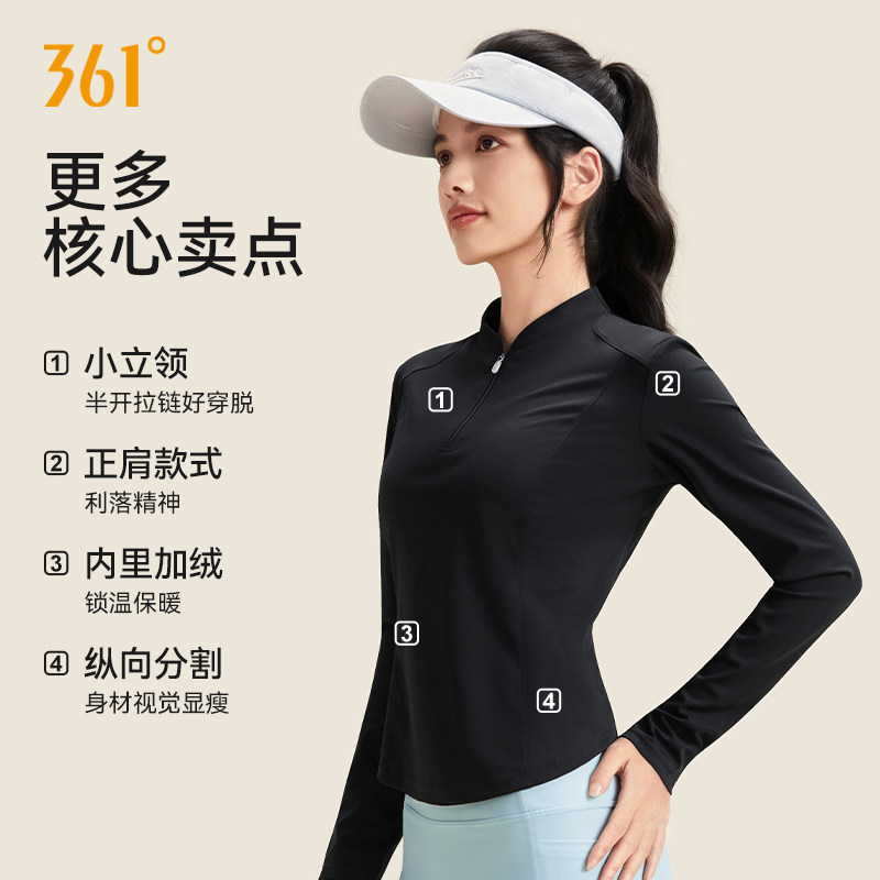 361加绒瑜伽服女2025冬季新款半拉链保暖晨跑服长袖跑步运动上衣