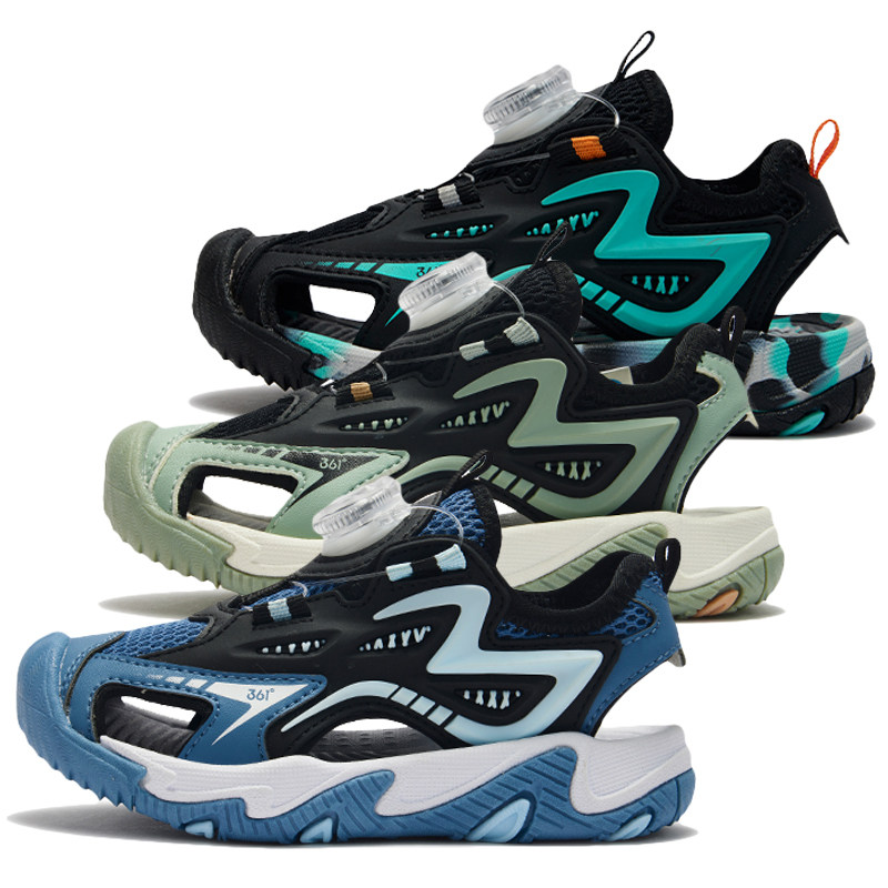 361度男童旋钮扣包头凉鞋新品2025夏小童防撞镂空沙滩鞋K72524601
