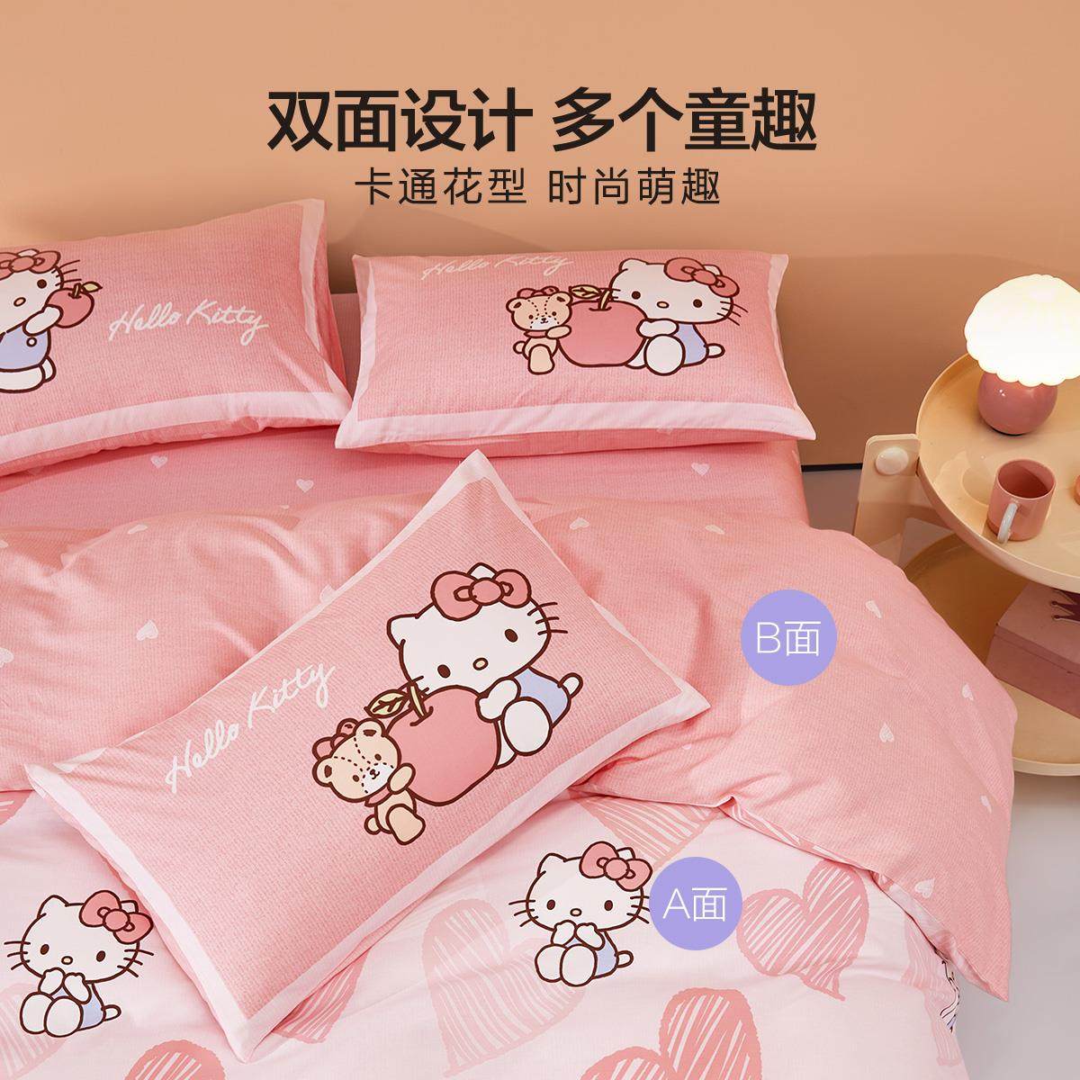 水星儿童磨毛母婴A类抑菌三/四件套全棉秋冬保暖套件卡通粉色女