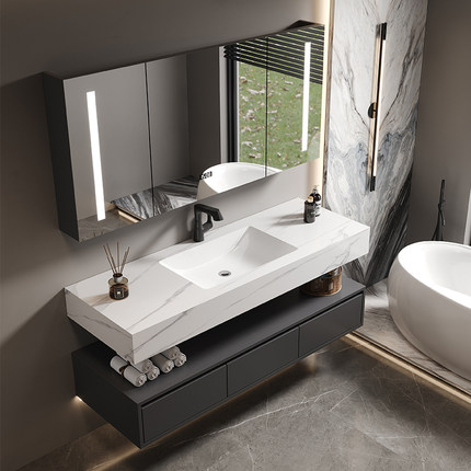 2025新款浴室柜酒店风岩板无缝陶瓷一体盆卫生间洗脸盆洗手盆组合
