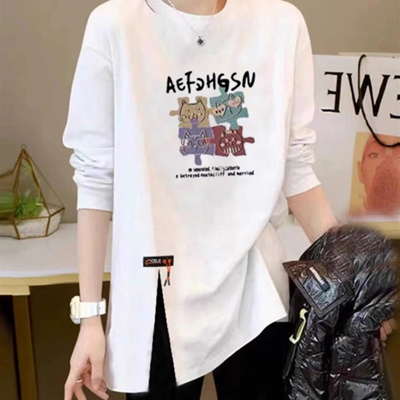 白t恤女士设计小众2025春秋冬新款宽松长袖底裤衬衫trbottom