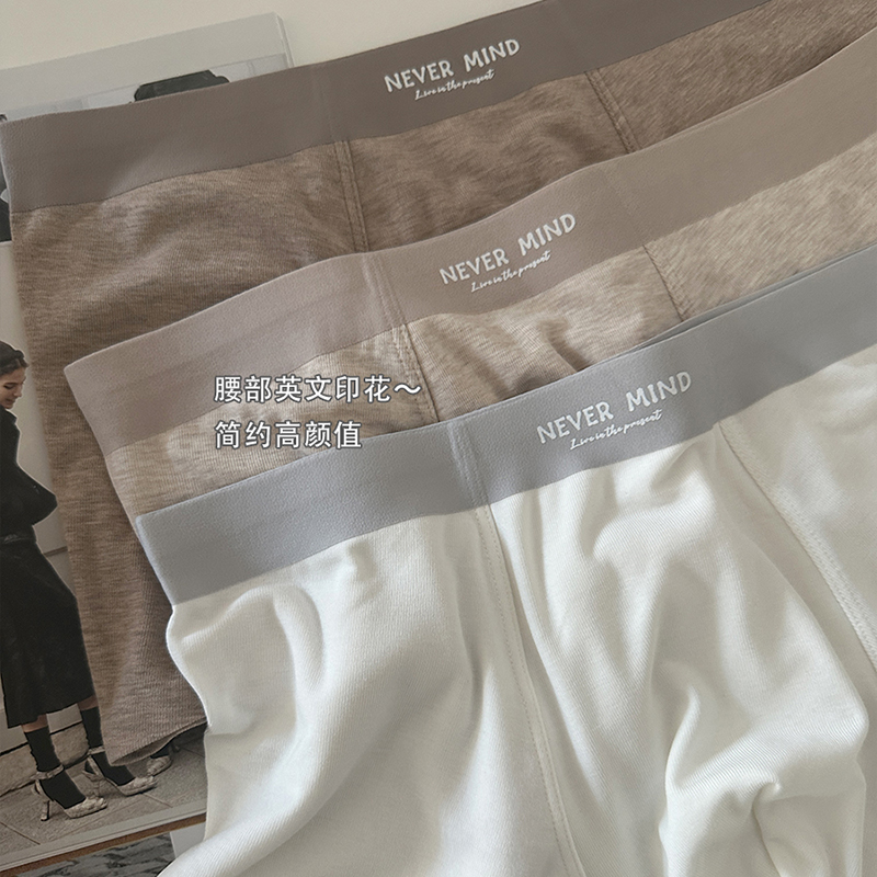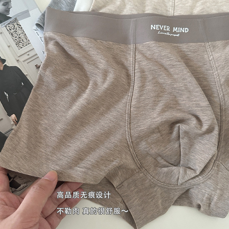 漫画感少年男士内裤无痕裸感秋冬咖色系温暖轻磨毛U凸裆纯色平角