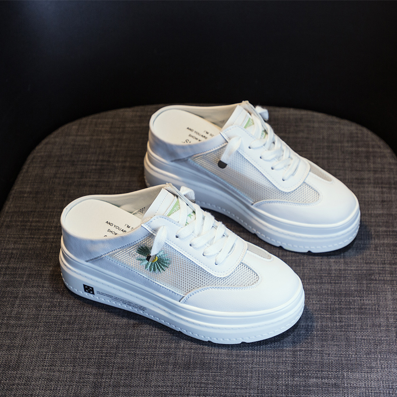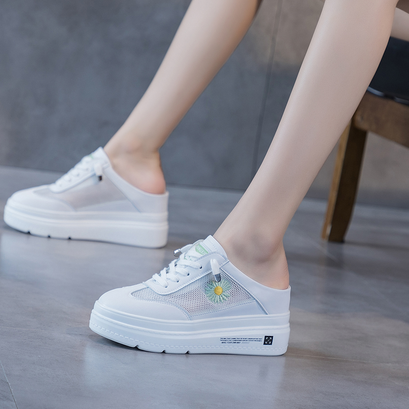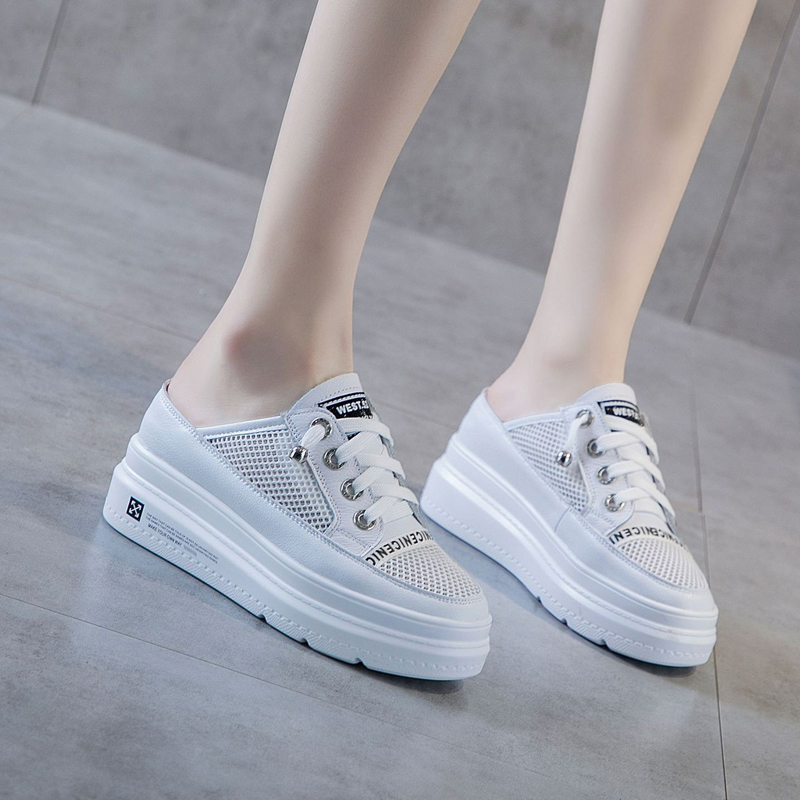 包头厚底小白鞋无后跟外穿半拖鞋女2021夏款内增高懒人Z松糕底凉