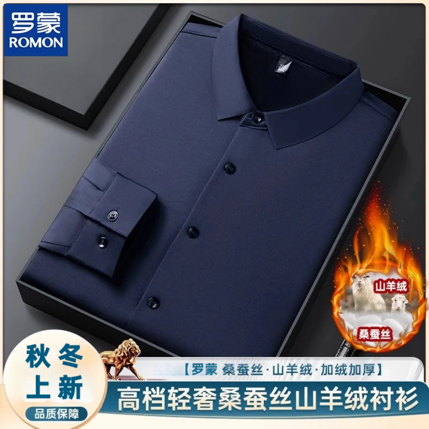 罗蒙新款男士桑蚕丝羊绒保暖衬衫