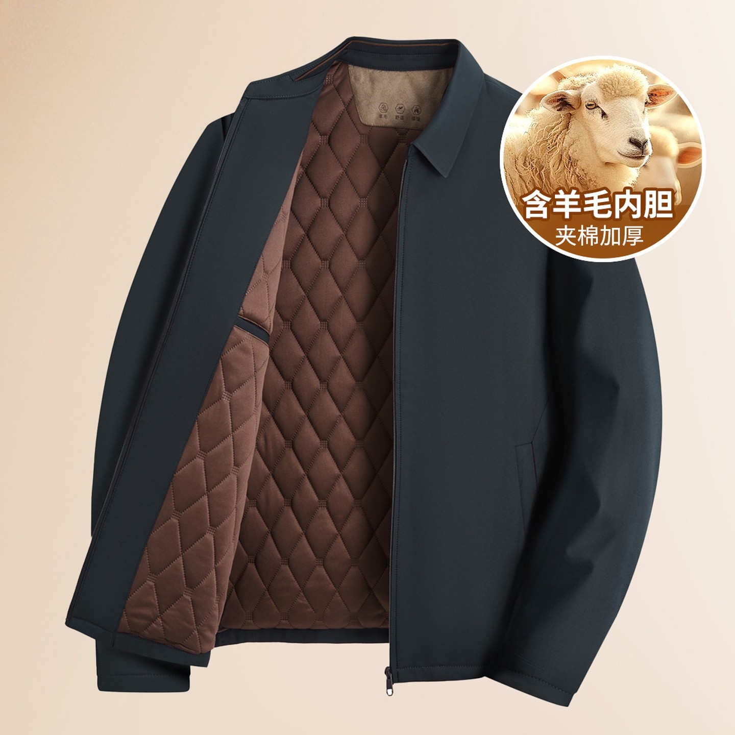 杉杉夹棉含羊毛内胆加厚翻领外套