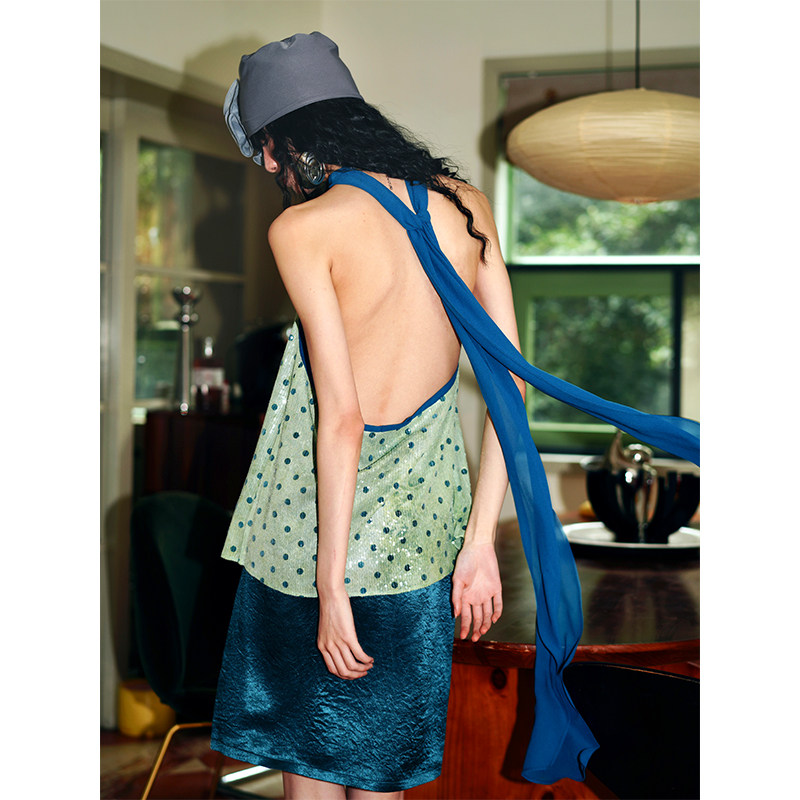 坏品味西部 定制扎染亮片波点多穿度假露背背心半裙