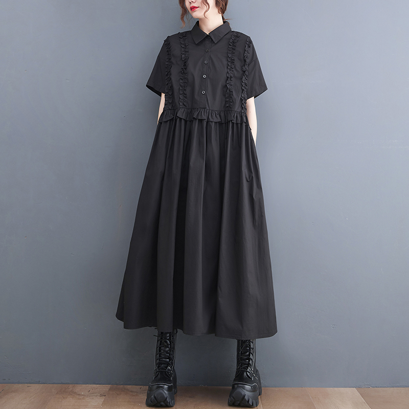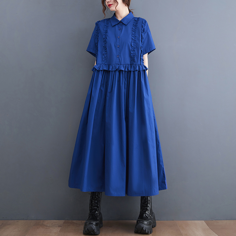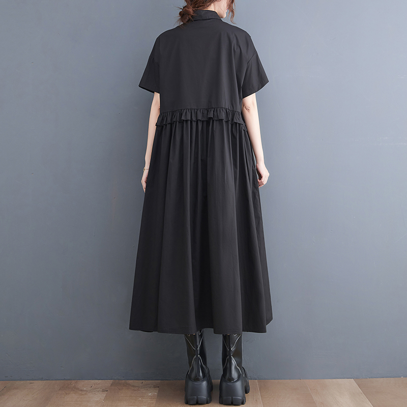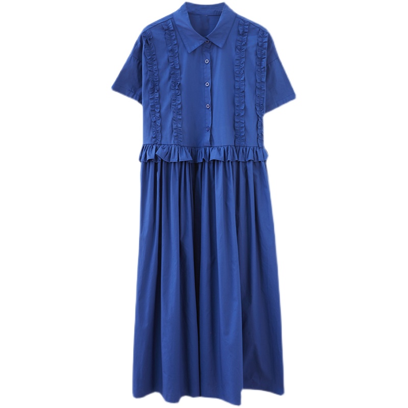 捡漏夏季文艺大码宽松显瘦洋气短袖收腰拼接中长款连衣裙子POLO领
