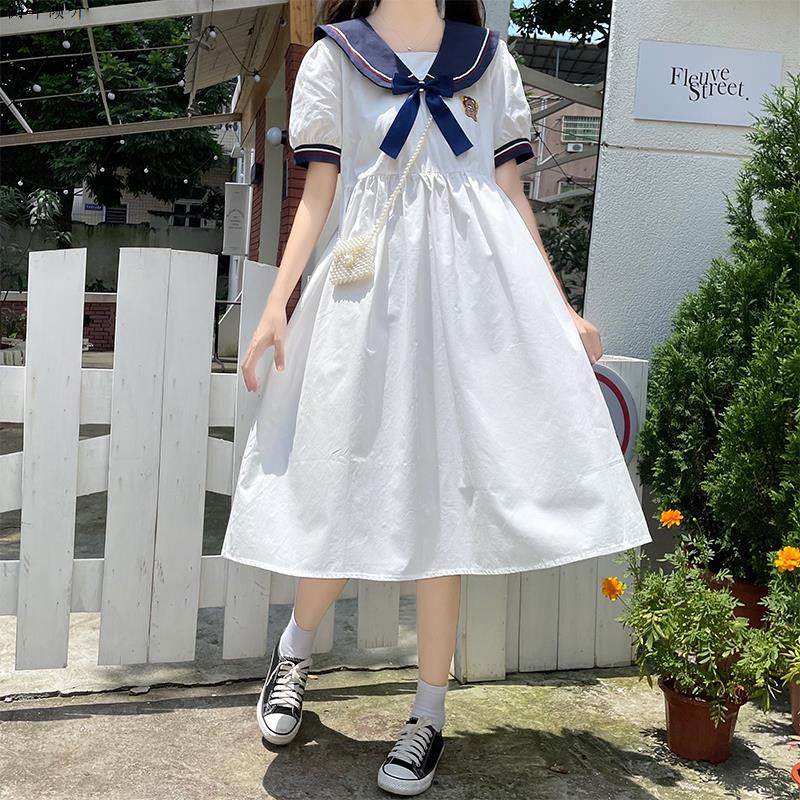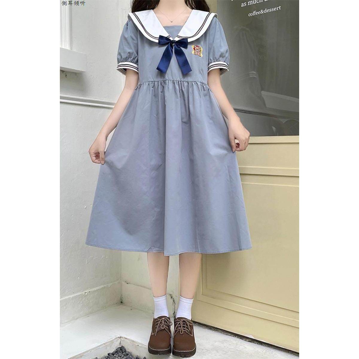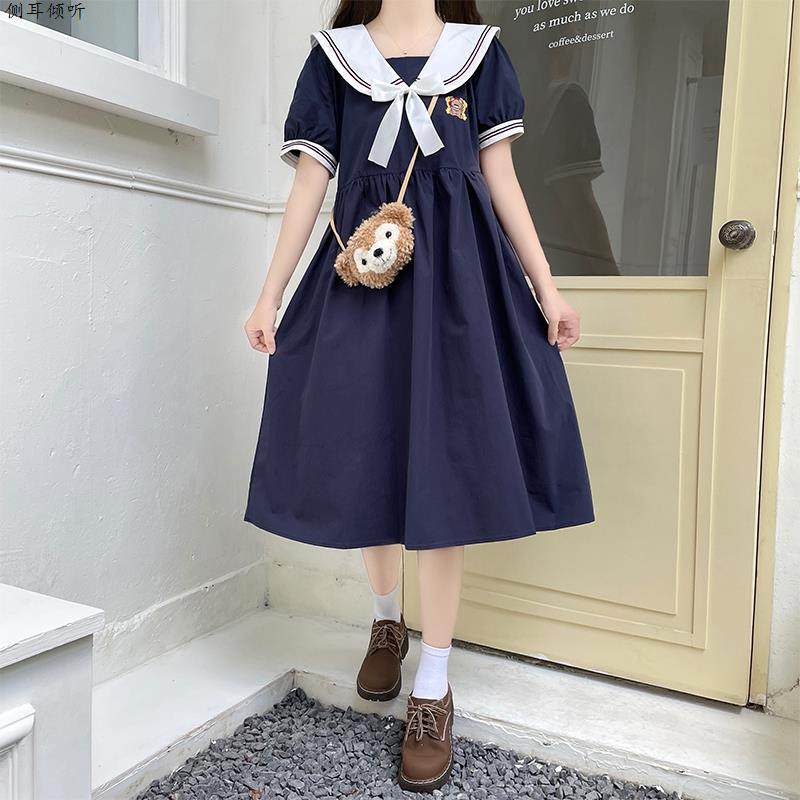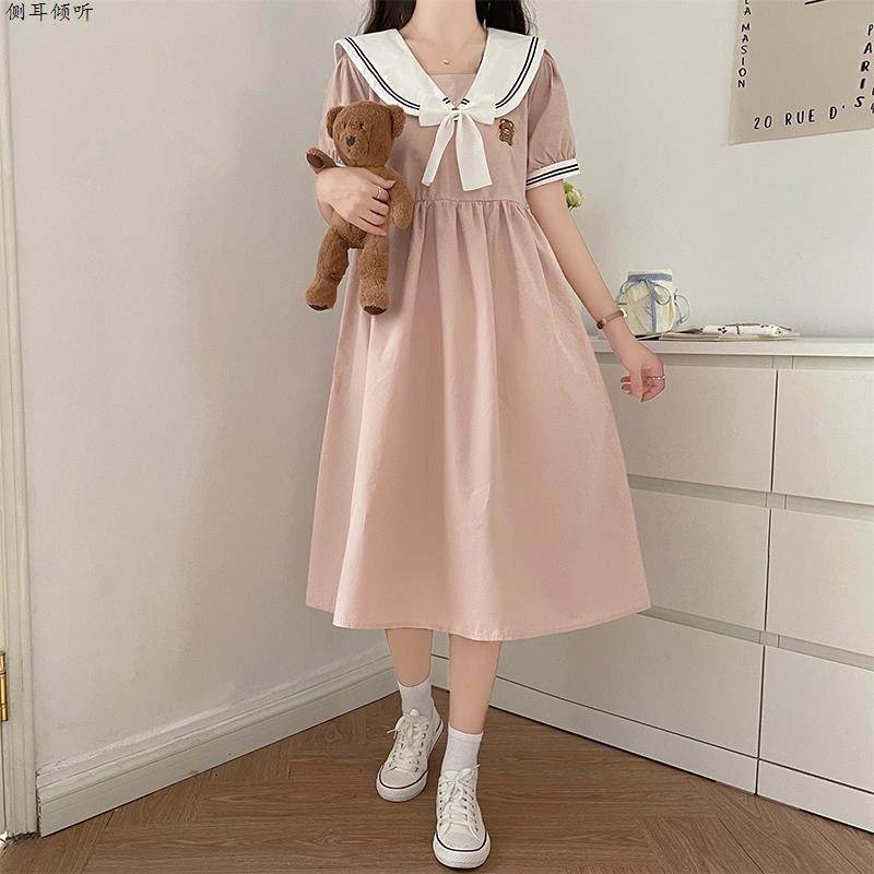 小熊刺绣连衣裙少女夏装学院风初高中学生日系甜美领初恋裙子