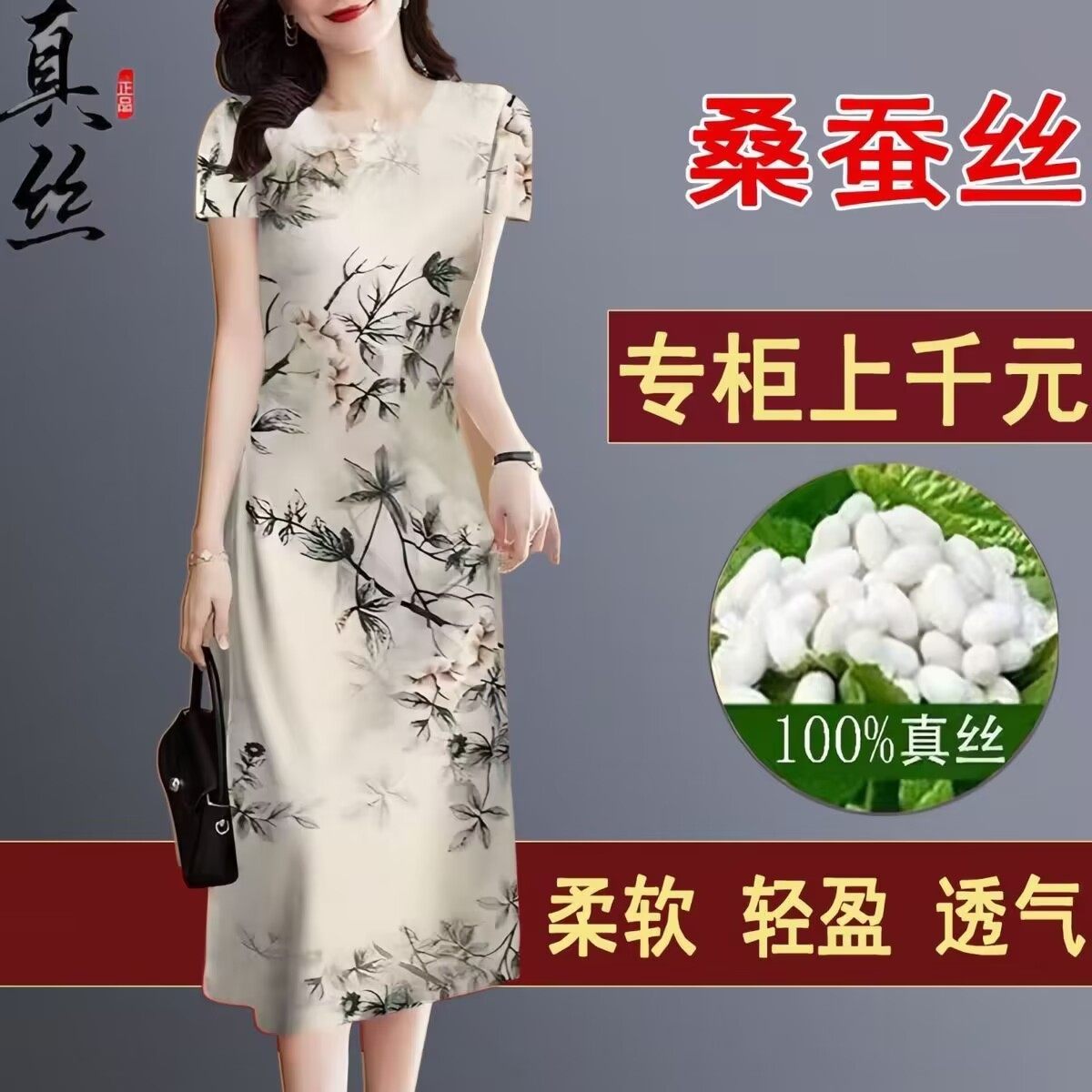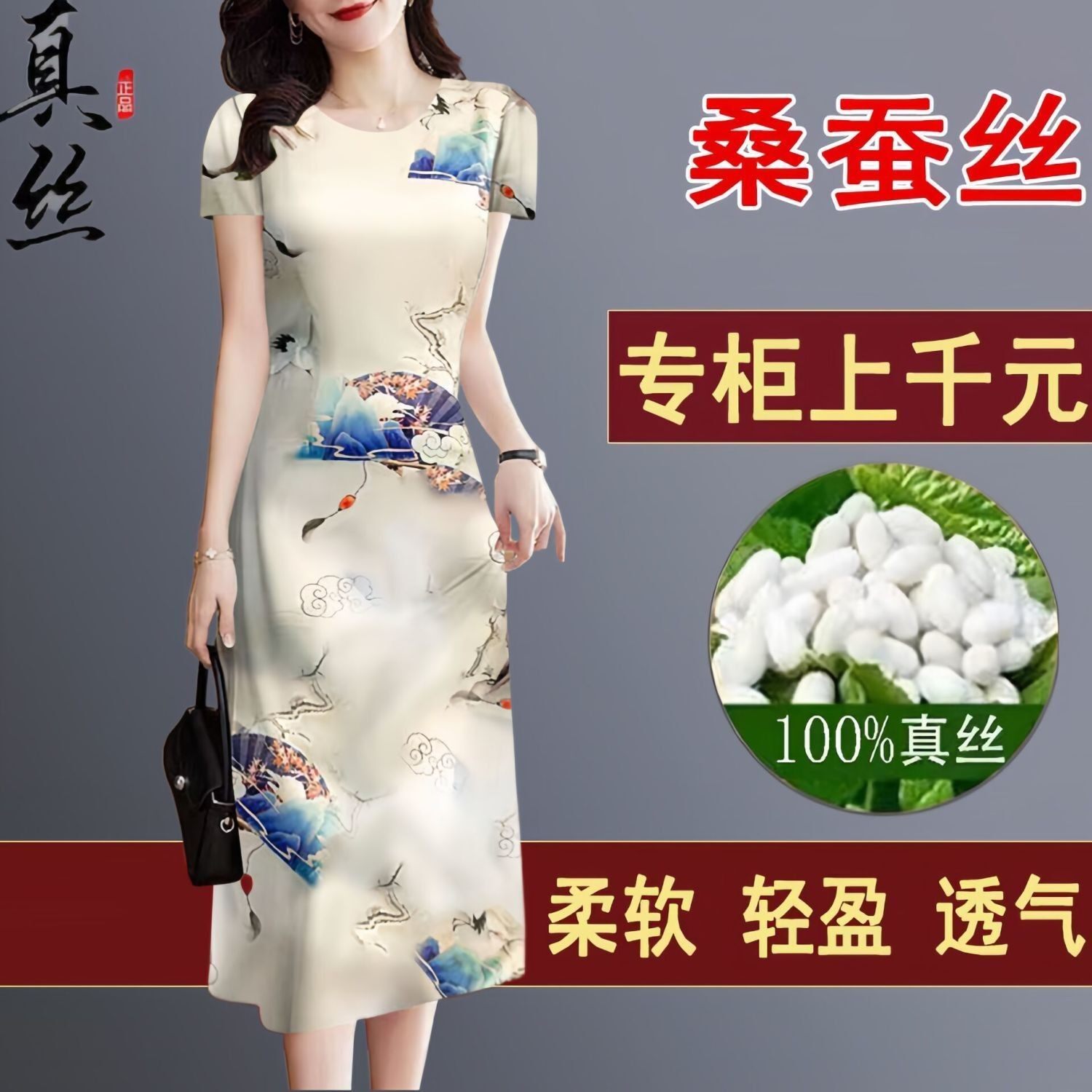 桑蚕丝香云纱连衣裙夏中老年妈妈