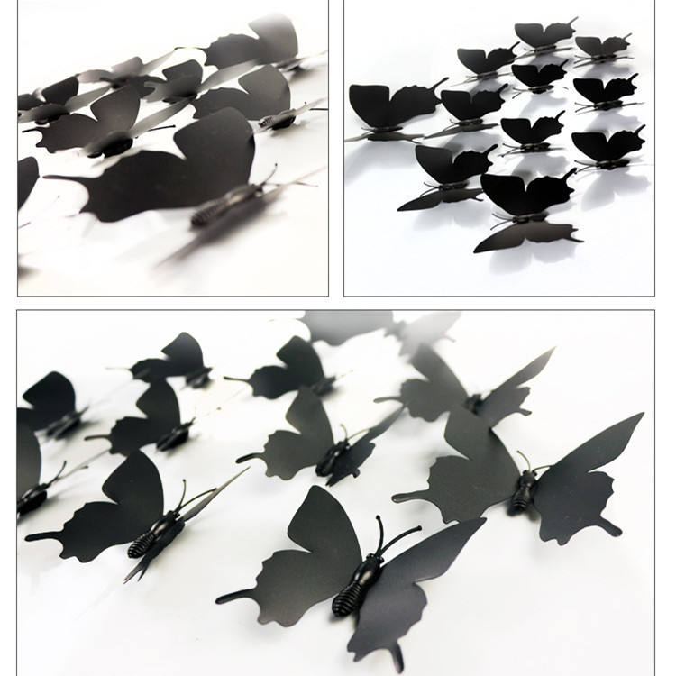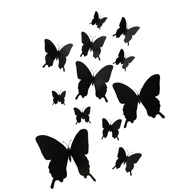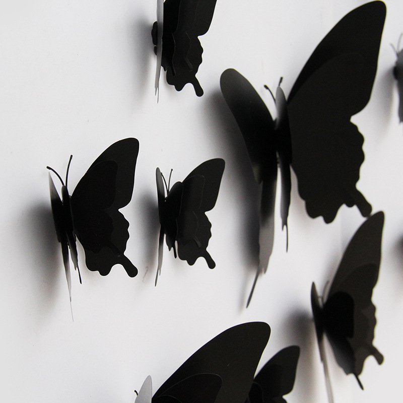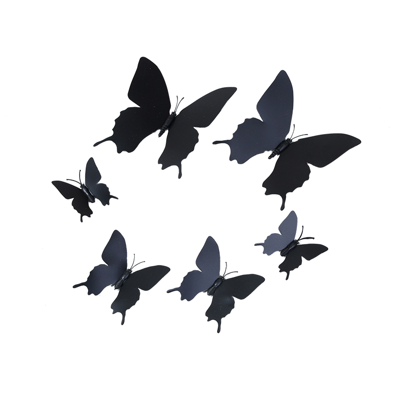 黑色立体蝴蝶装饰壁饰酒店会所餐厅室内背景婚庆装饰家居橱窗贴饰