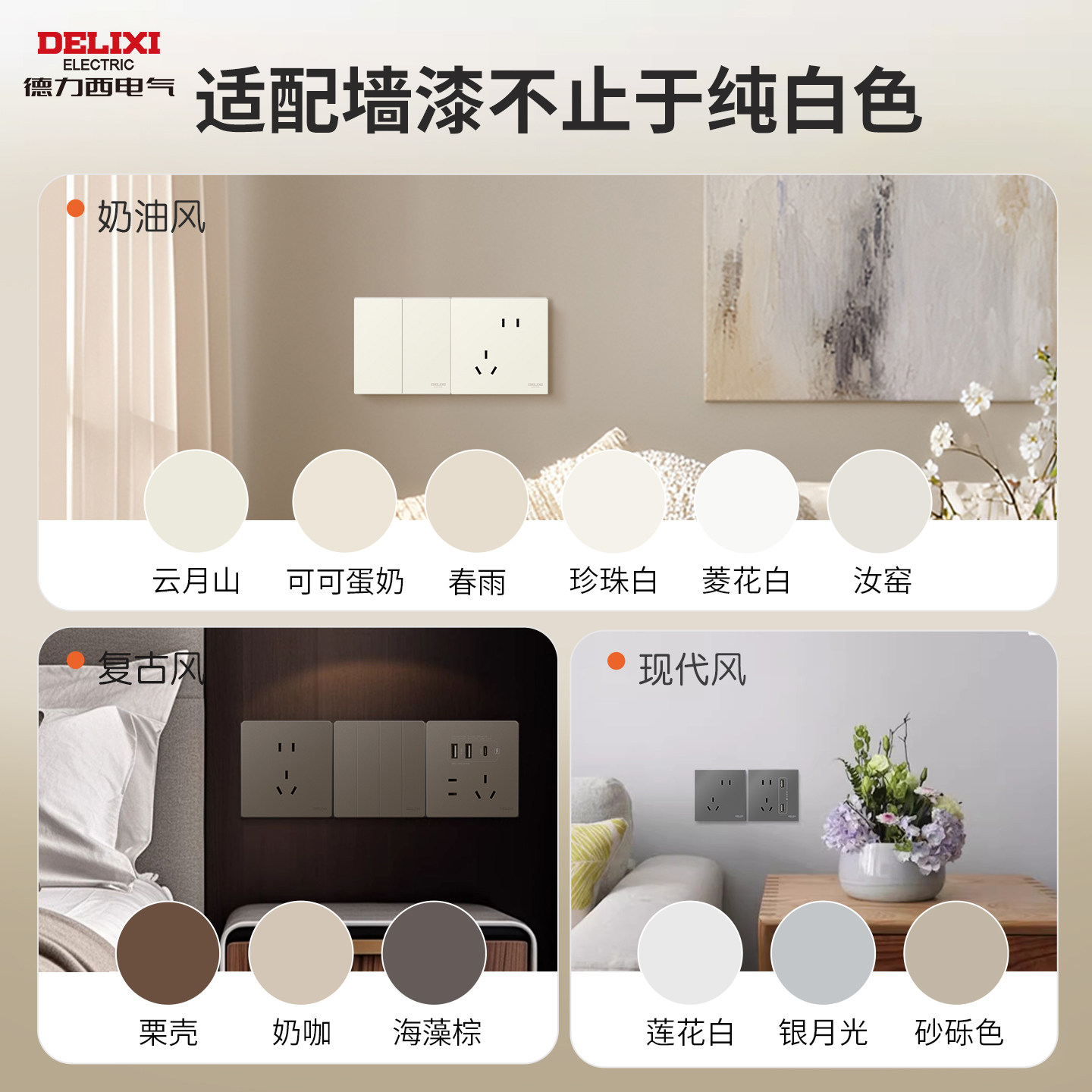 德力西开关插座全屋套餐官方旗舰店智能开关超薄哑光面板奶油风白