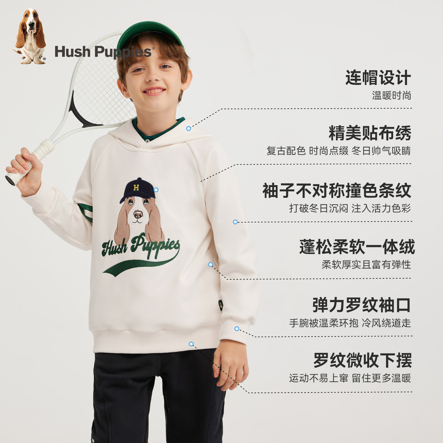 暇步士童装男童加绒卫衣25秋冬大童休闲连帽卫衣宝宝儿童保暖帽衫