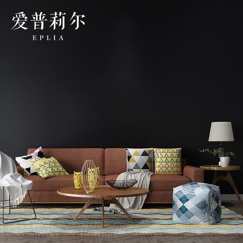 现代简约长纤无纺布浅灰色墙纸非自粘卧室M客厅背景墙壁纸黑色深