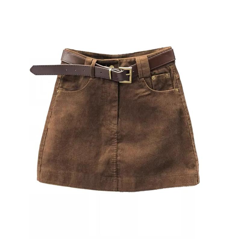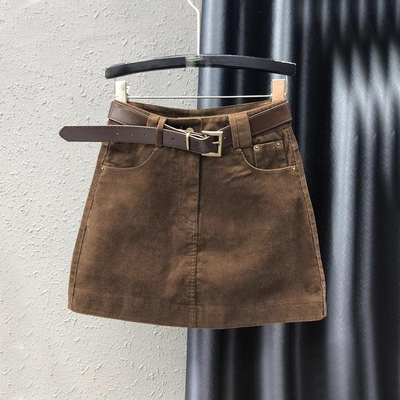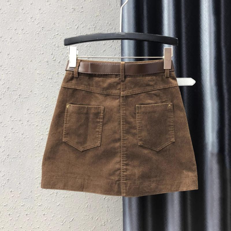 百搭咖色半身裙女灯芯绒短裙秋冬新款显瘦高腰A字包臀裙子时尚感