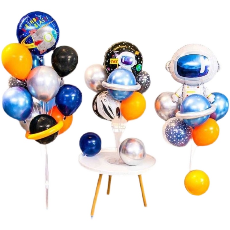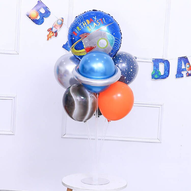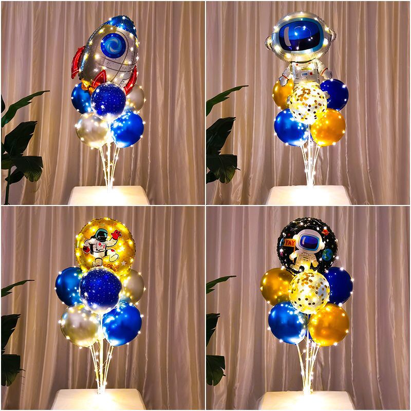 太空宇航员卡通桌飘气球发光支架生日装饰场景布置宝宝一周岁派对