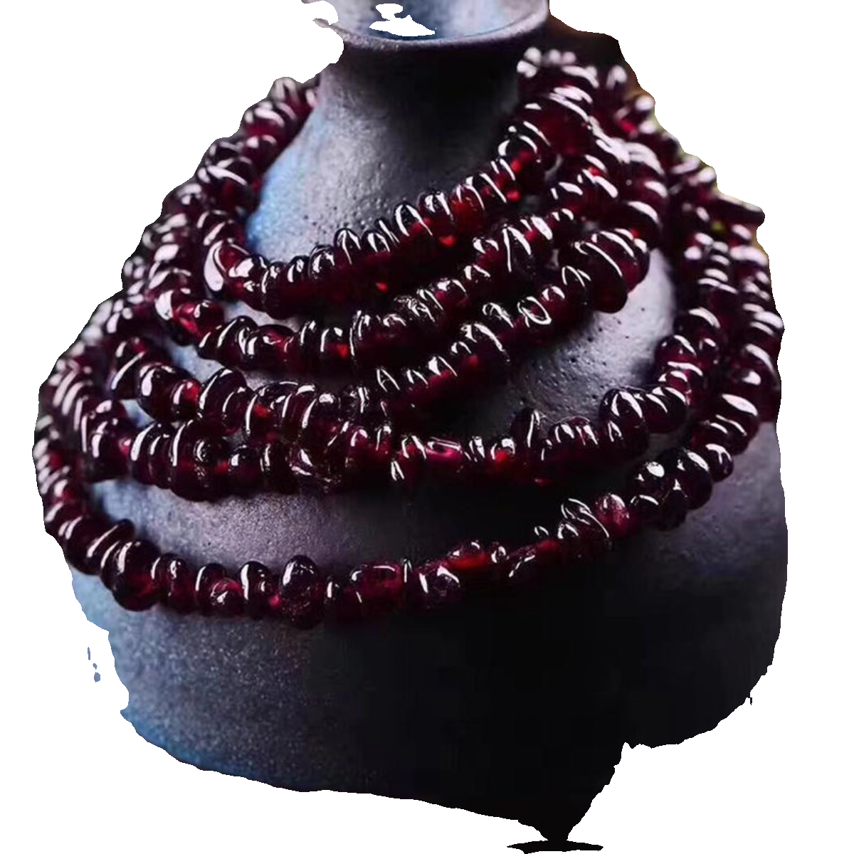 天然酒红石榴石手链女手串碎石手链原石多圈女人石送女朋友礼物