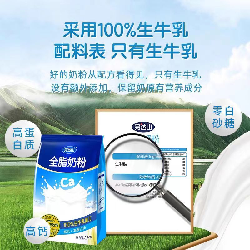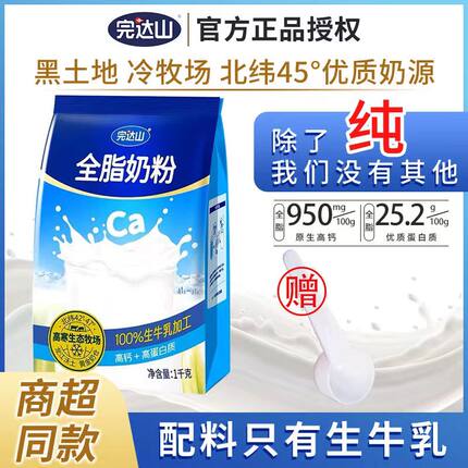 完达山全脂奶粉1kg 纯牛奶粉生牛乳配方成人中老年学生男女士奶粉
