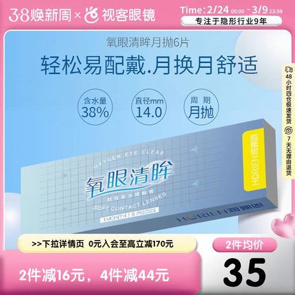 海俪恩隐形眼镜月抛盒6片大小直径近视眼镜隐旗舰同款官方正品