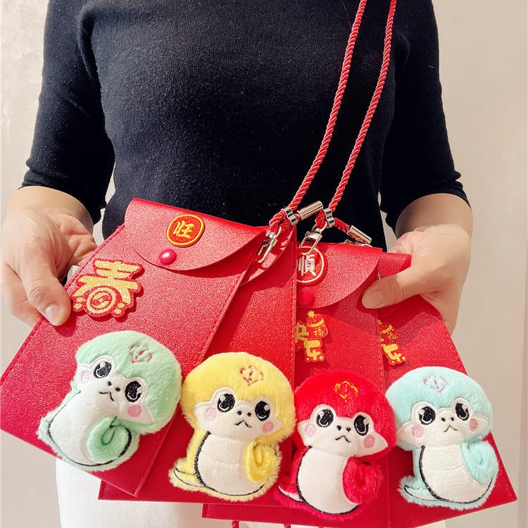 2025蛇年新春毛绒立体皮质红包过年压岁钱喜包袋儿童卡通利是封大