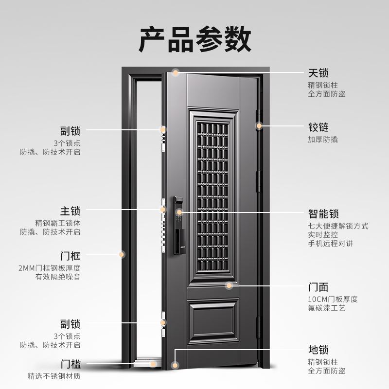 欧帝乐防盗门家用通风进户门高端智能轻奢入户门中户通风门单开门