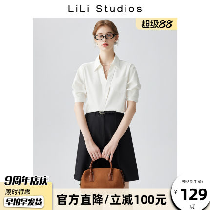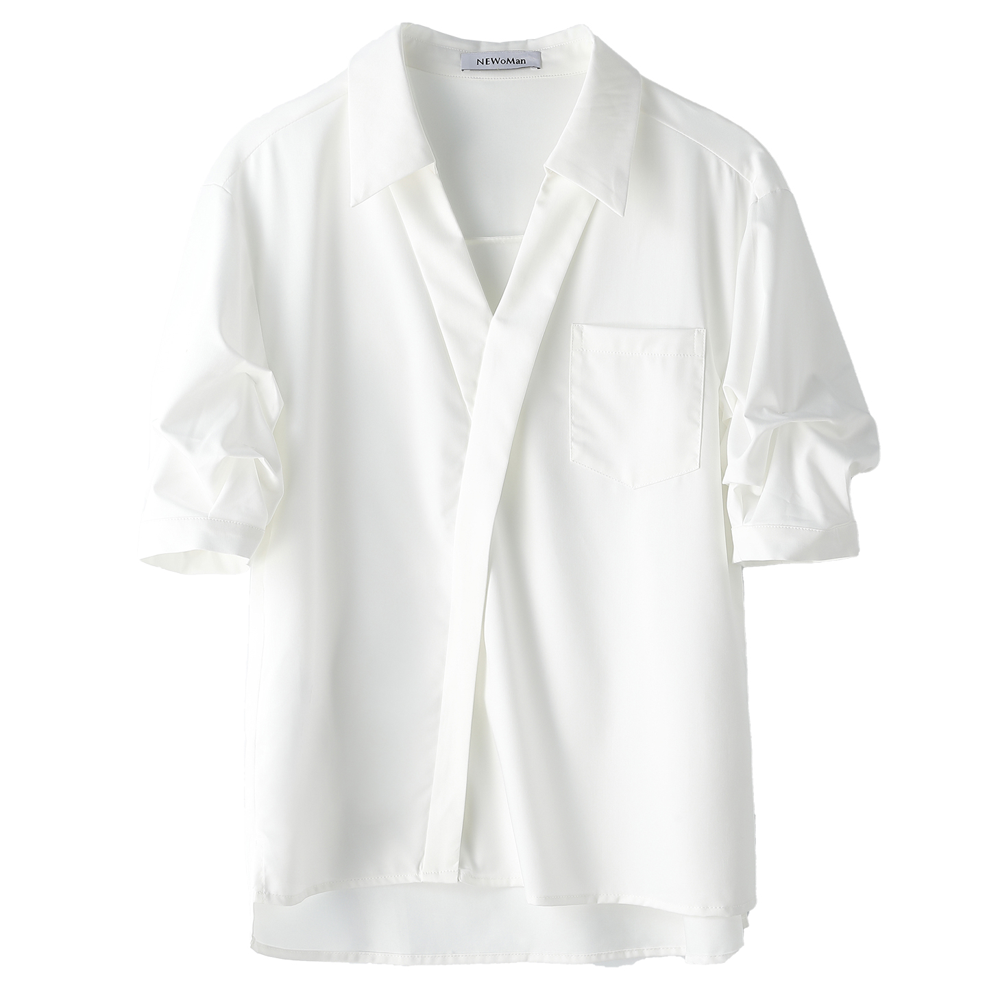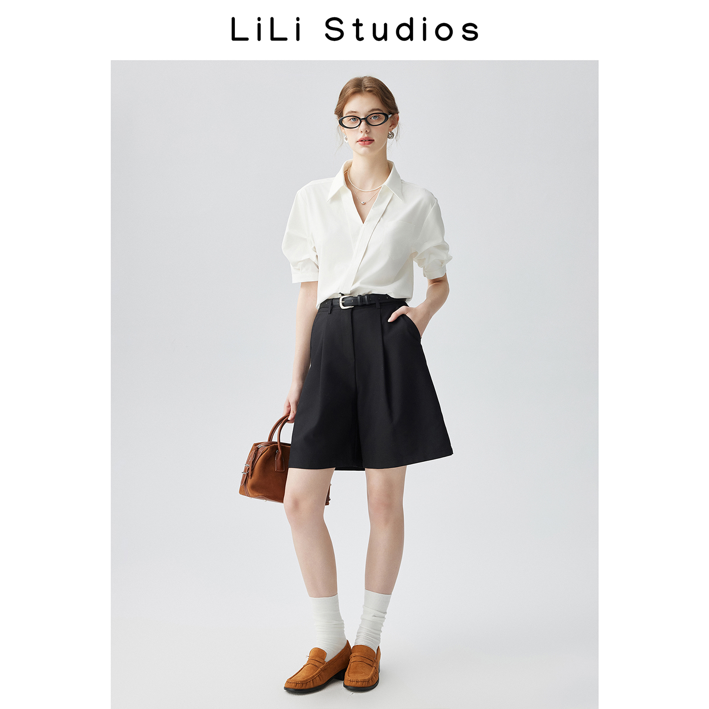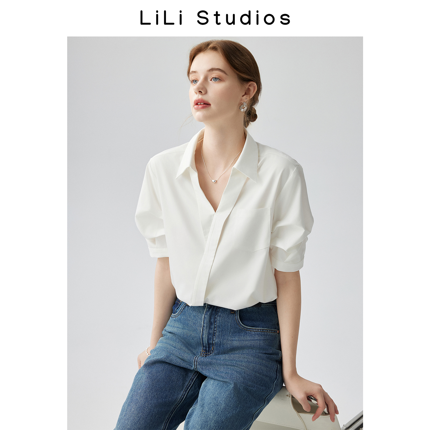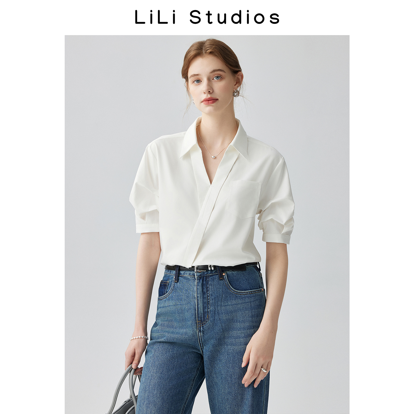 法式衬衫女2025年夏季新款休闲设计感小众上衣V领短袖通勤白衬衣